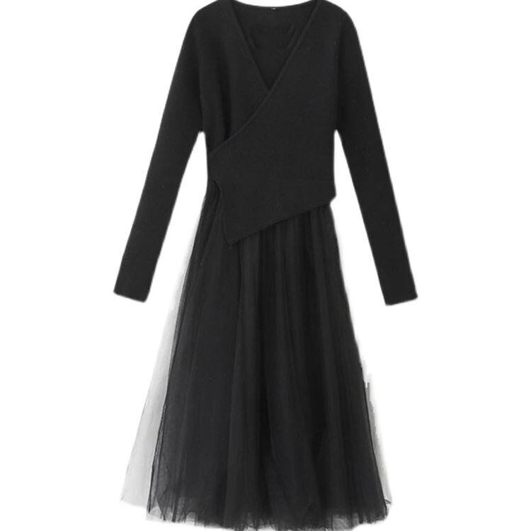 2color チュール ドッキング ニットワンピース 22095