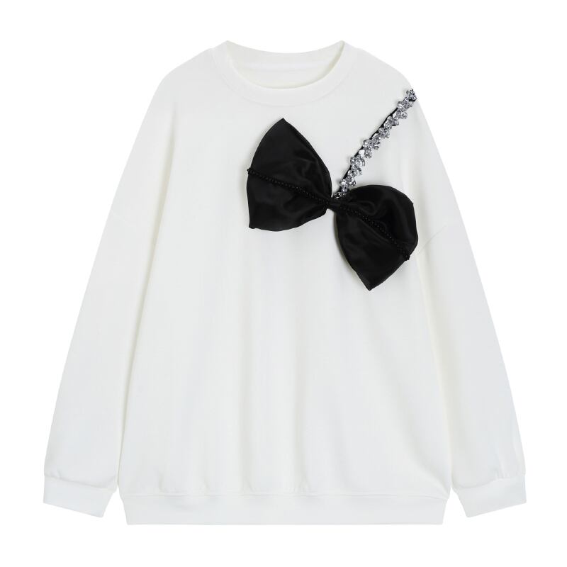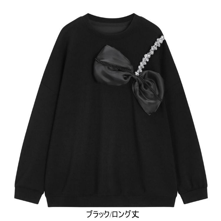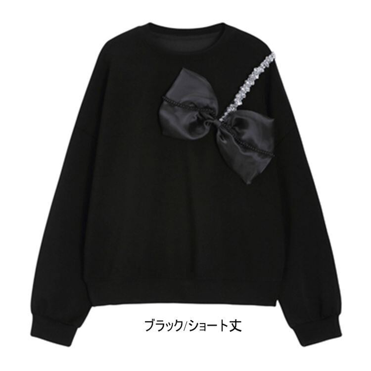 2color リボン ビジュー スウェット トップス 22143