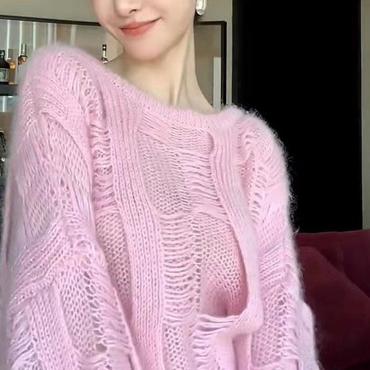2color ローゲージ ワイド ルーズ ニット トップス 22165