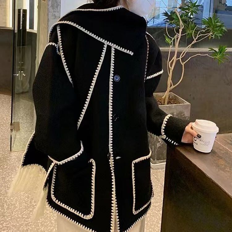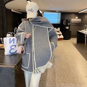 ステッチラインがかわいいマフラー付きコートです。