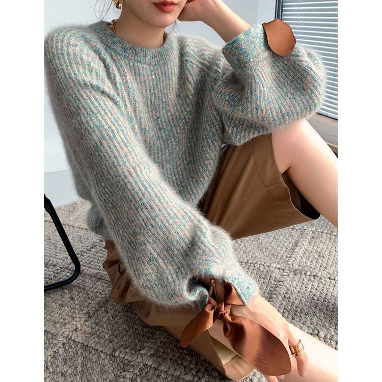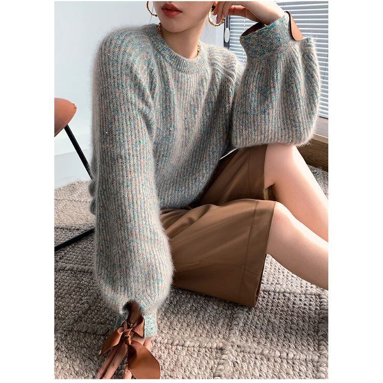2color リボンスリーブ ミックスカラー ニット トップス 22240