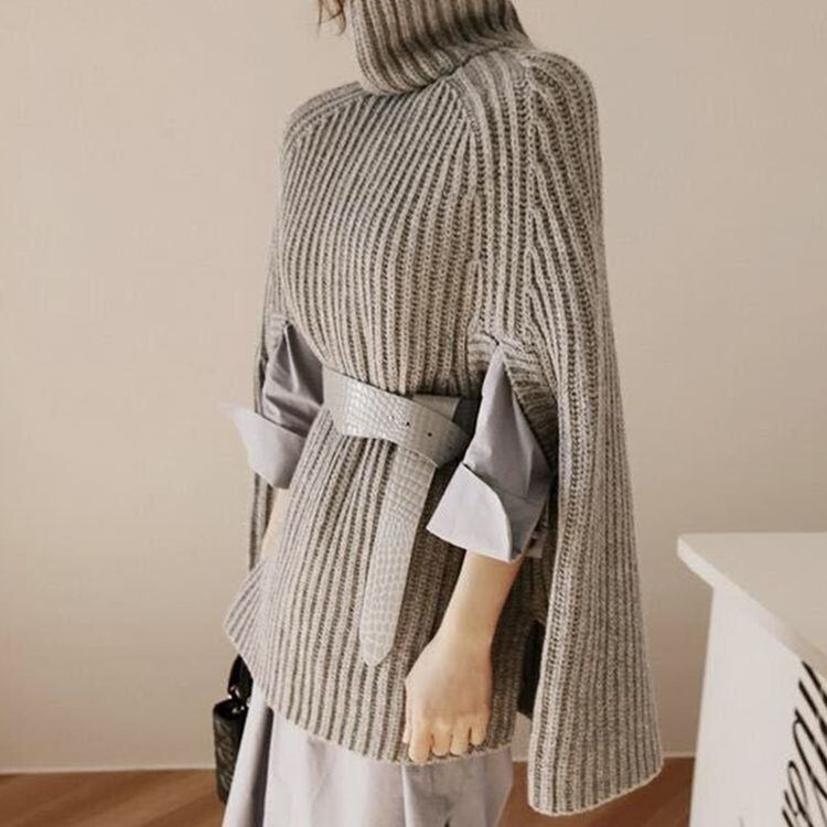 4color ポンチョ ハイネック ニットトップス 22291