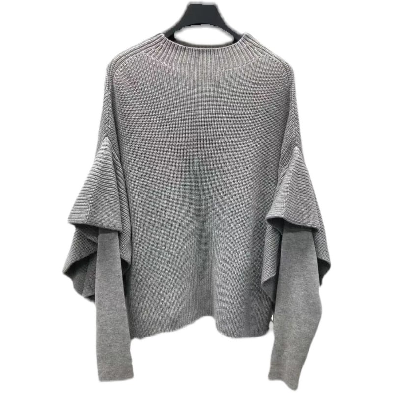 トップにボリュームがでるので、タイトなボトムとのコーデがおすすめです。