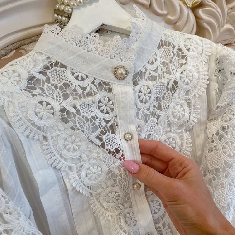 華やかなレースにパールがクラシカルな雰囲気の一枚。