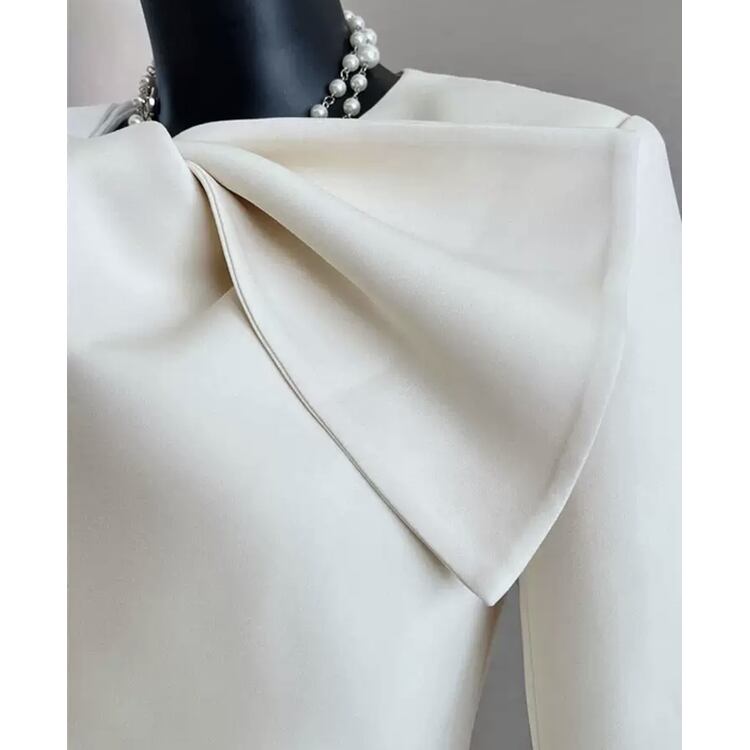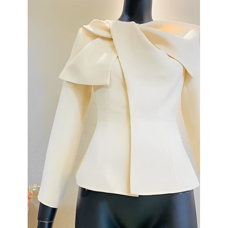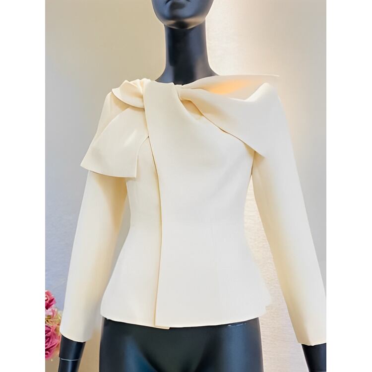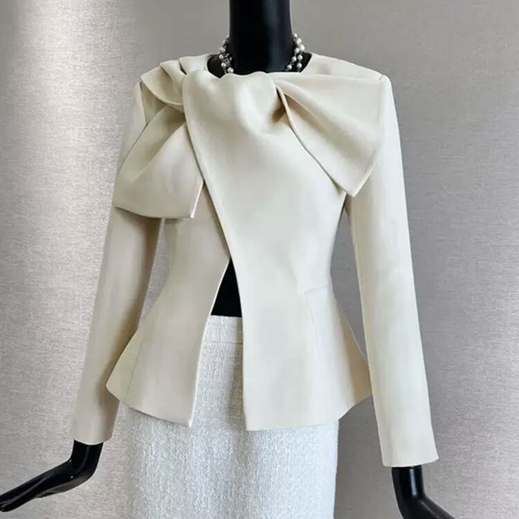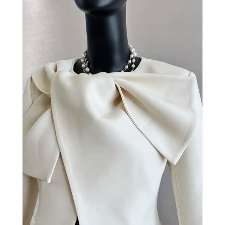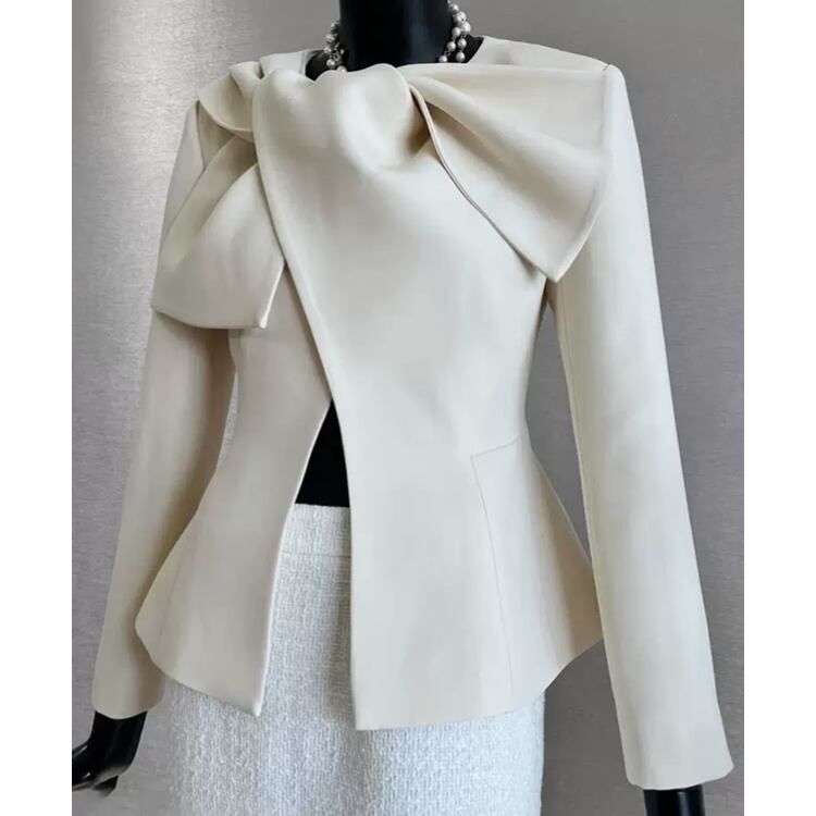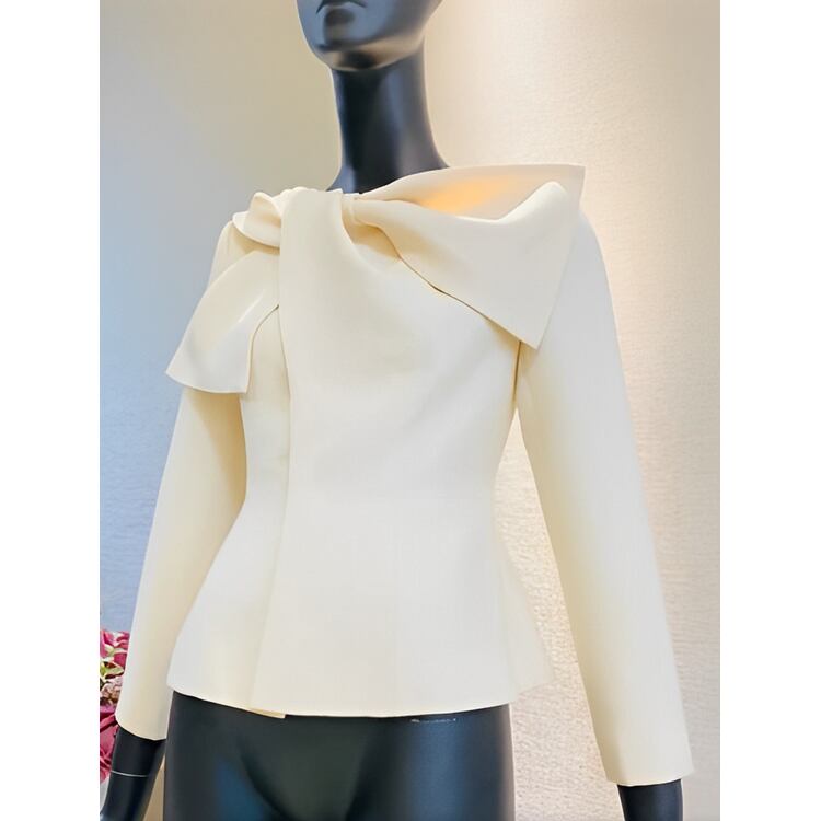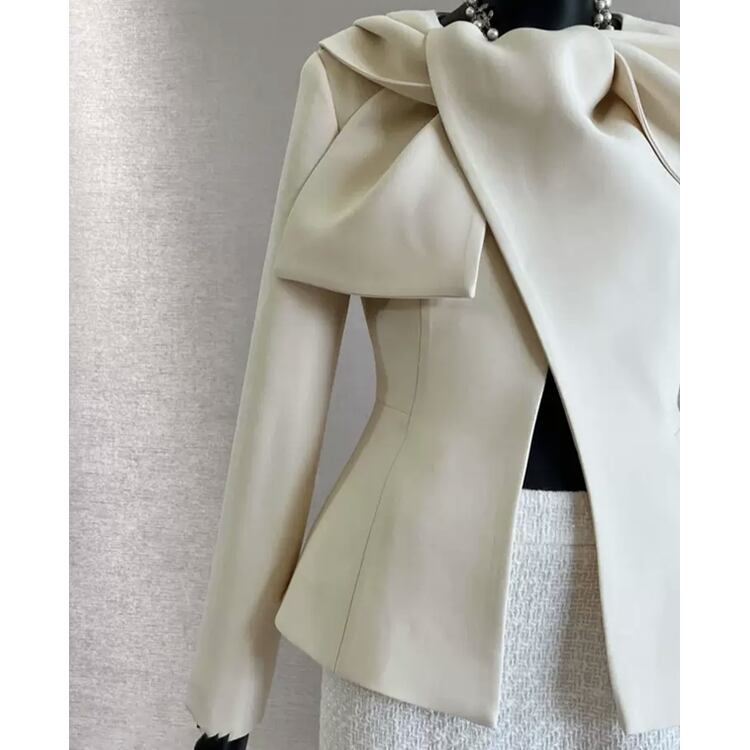 顔まわりが華やぐリボンデザインジャケットです。