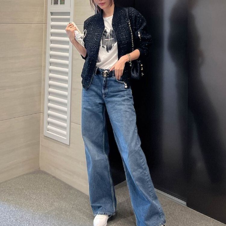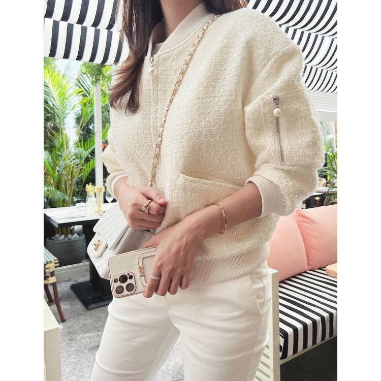 2color ツイード パールチャーム ブルゾン ジャケット 23091