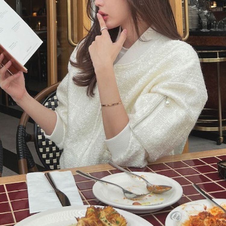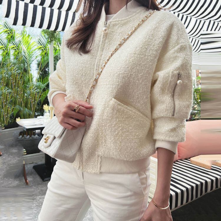 かっこよく上品にきまるツイードのショートブルゾン。