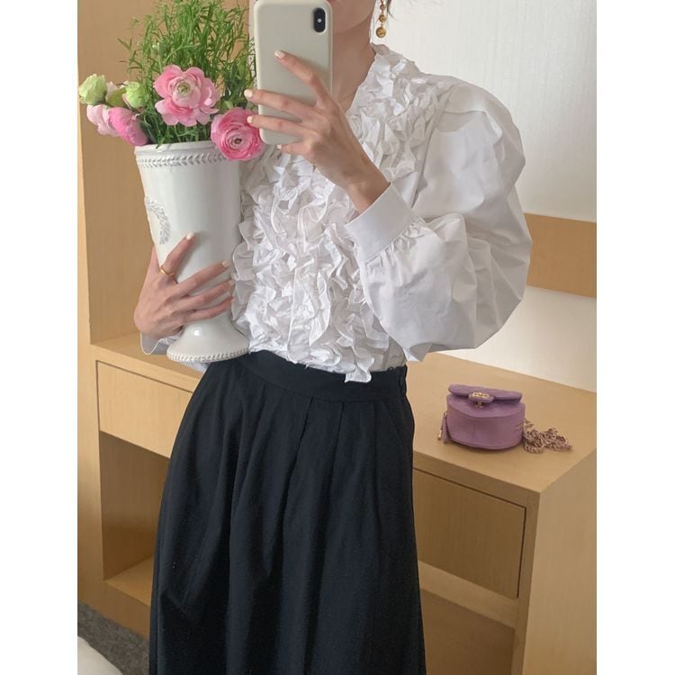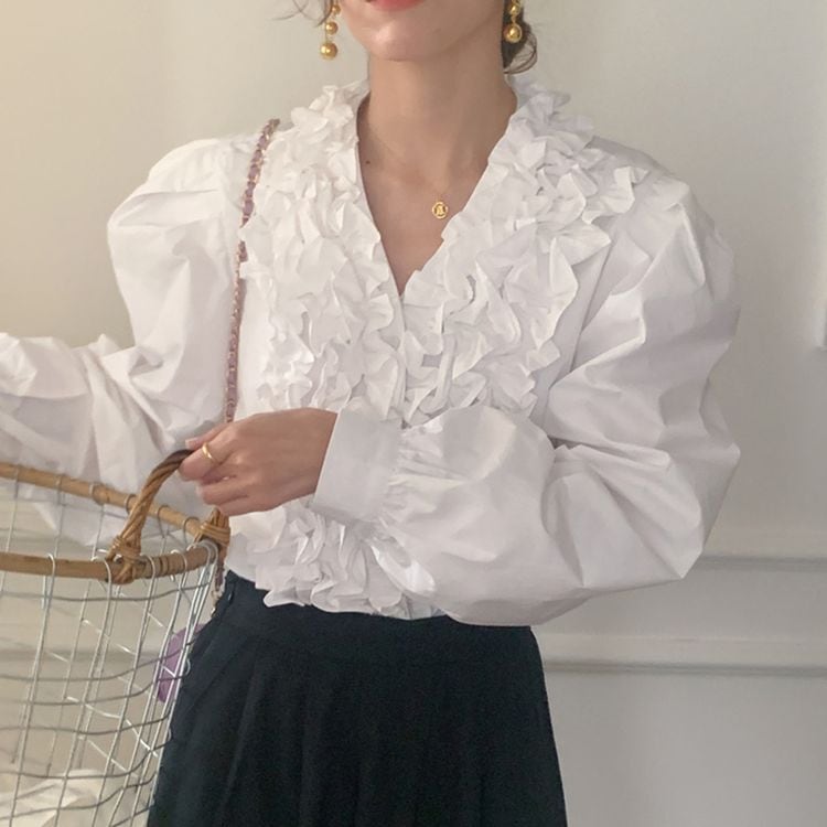 たっぷりのフリルにオーバーショルダーがかわいい♡
