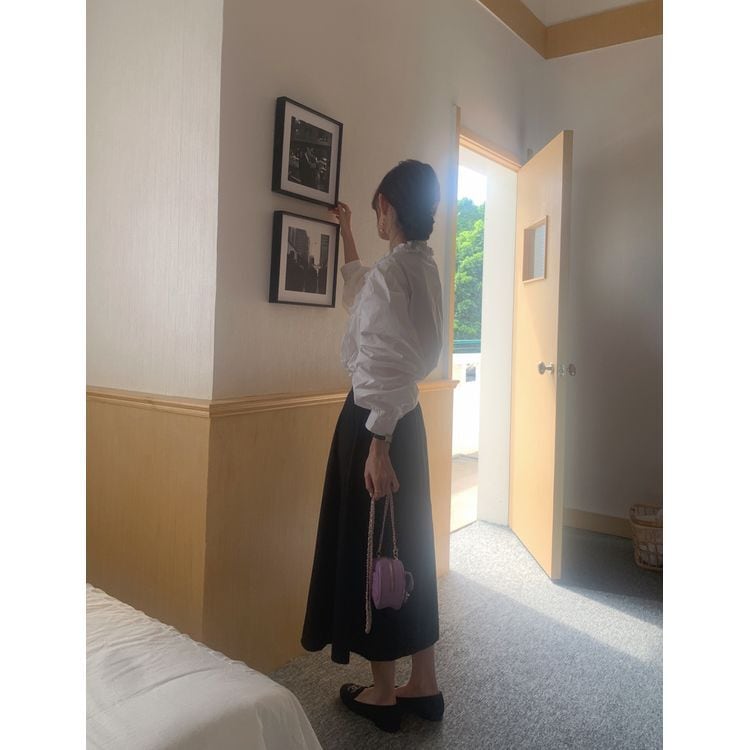 シンプルなデザインでありながら、コーディネートが華やぐ一枚です。