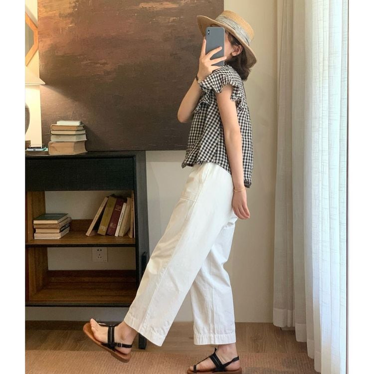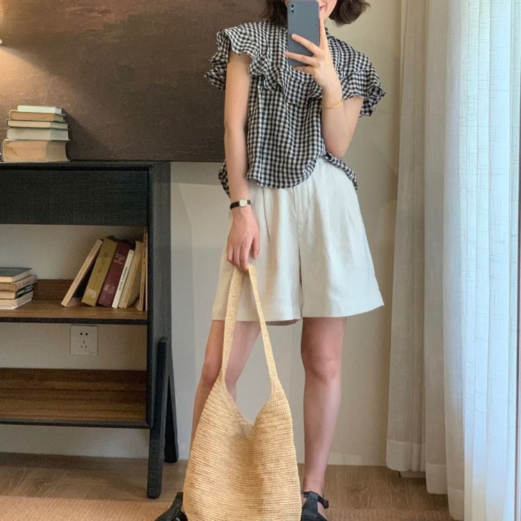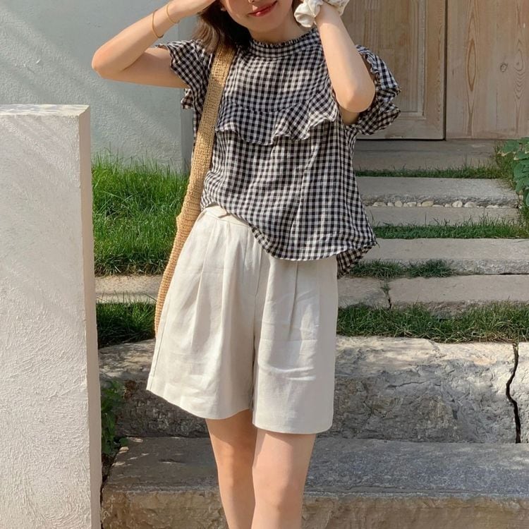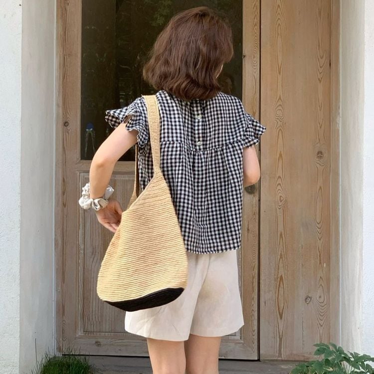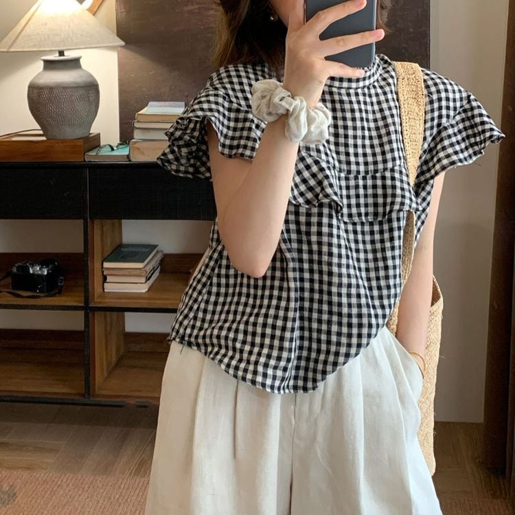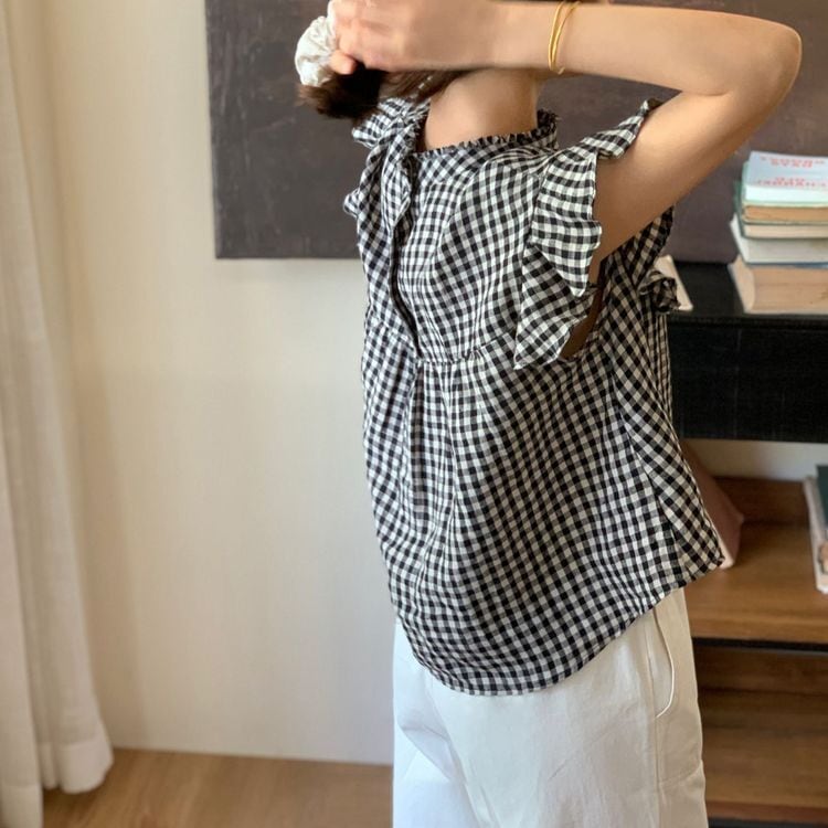 ギンガムチェック フリル シャツ 23215