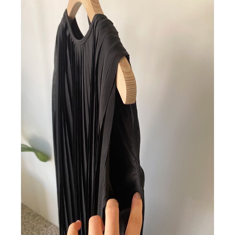 贅沢なプリーツデザインのノースリーブワンピース。
