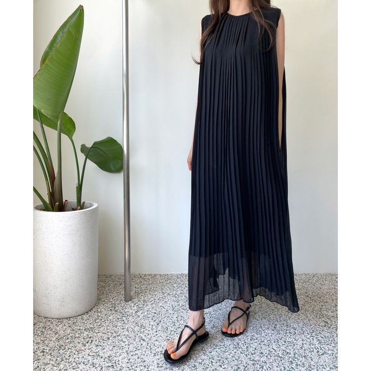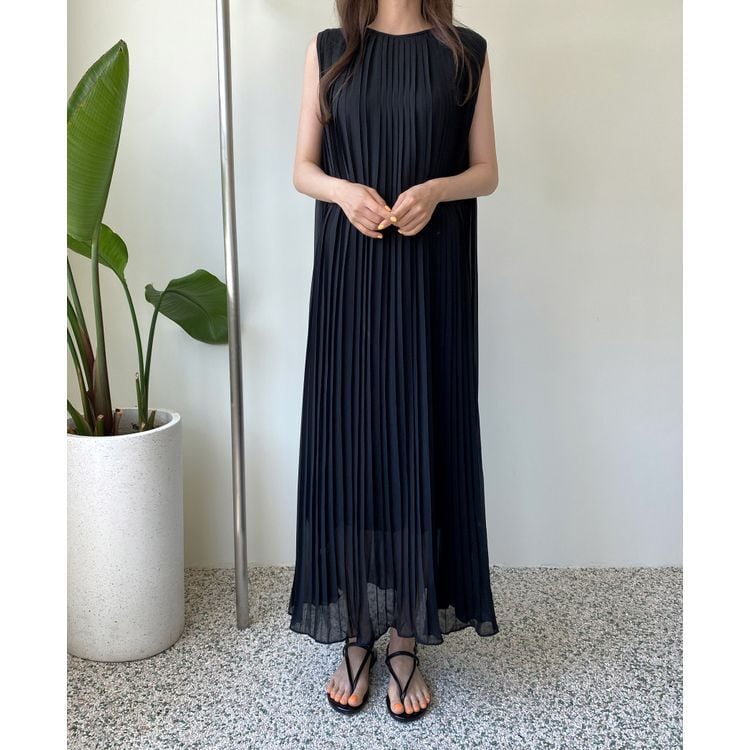 プリーツ ノースリーブ ワンピース 23217