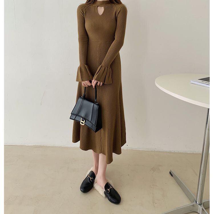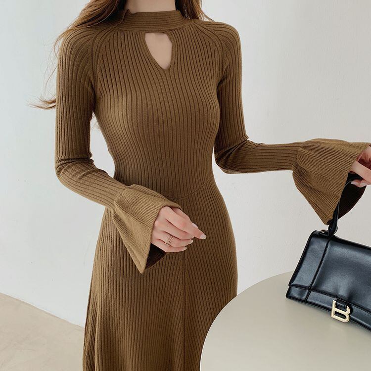 2way ベルスリーブ ニット フレアワンピース 3color 23432
