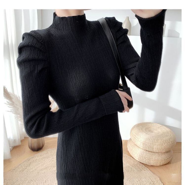 2color ハイネック パフスリーブ ニットワンピース 23469