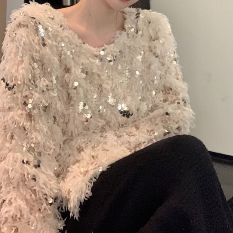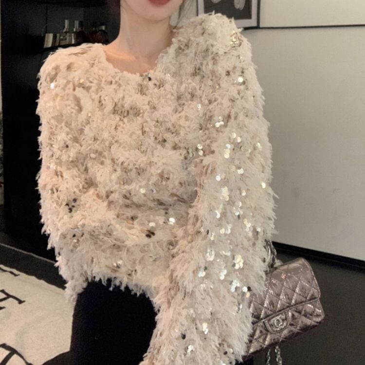 フェザー調ニットにキラキラスパンコールがキュート♡