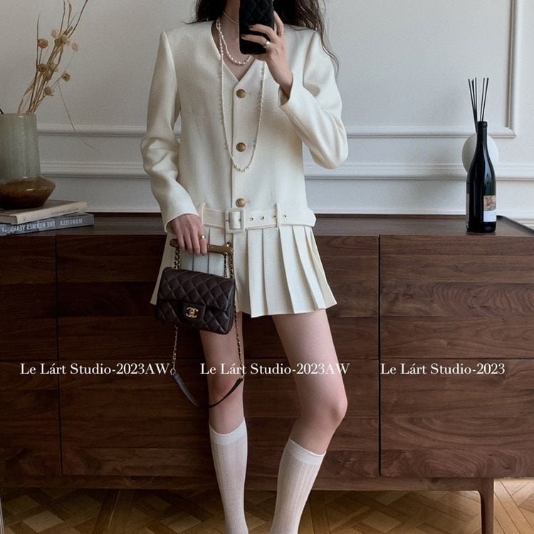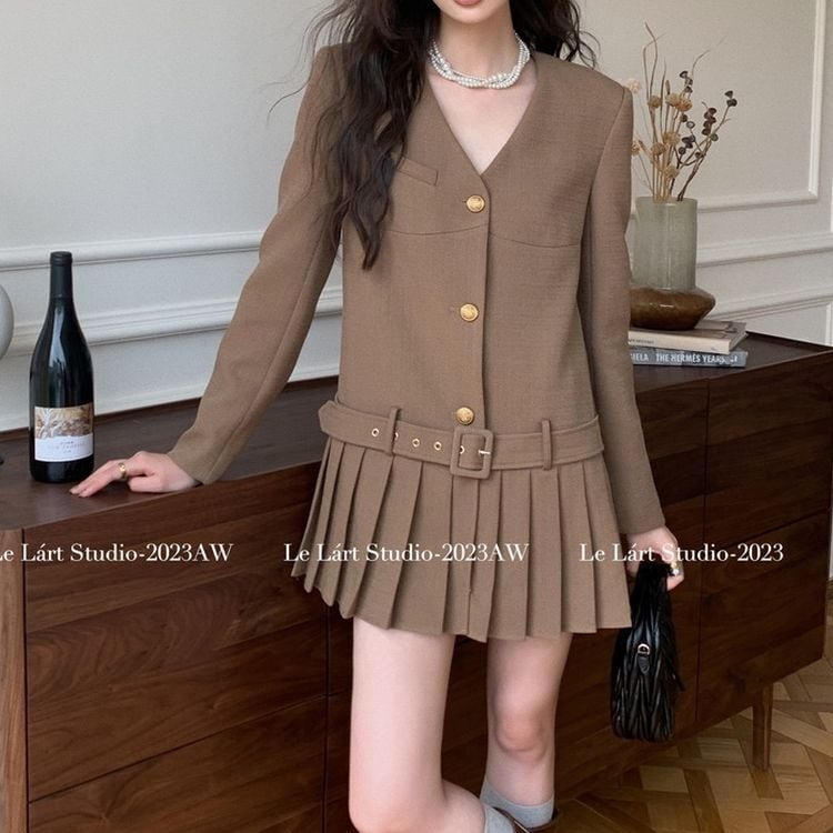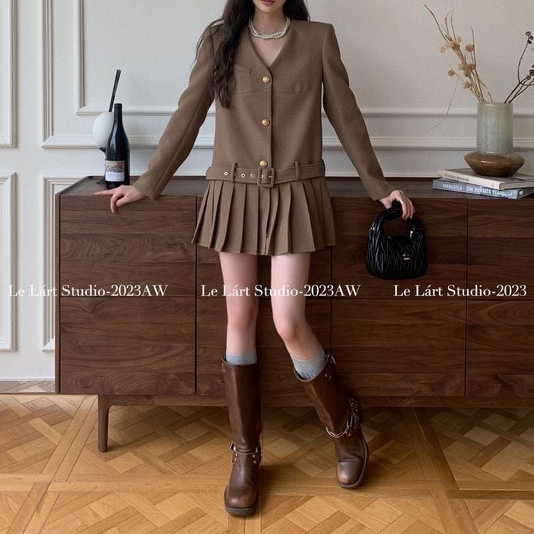 2color ヘムプリーツ ジャケット ワンピース 24051