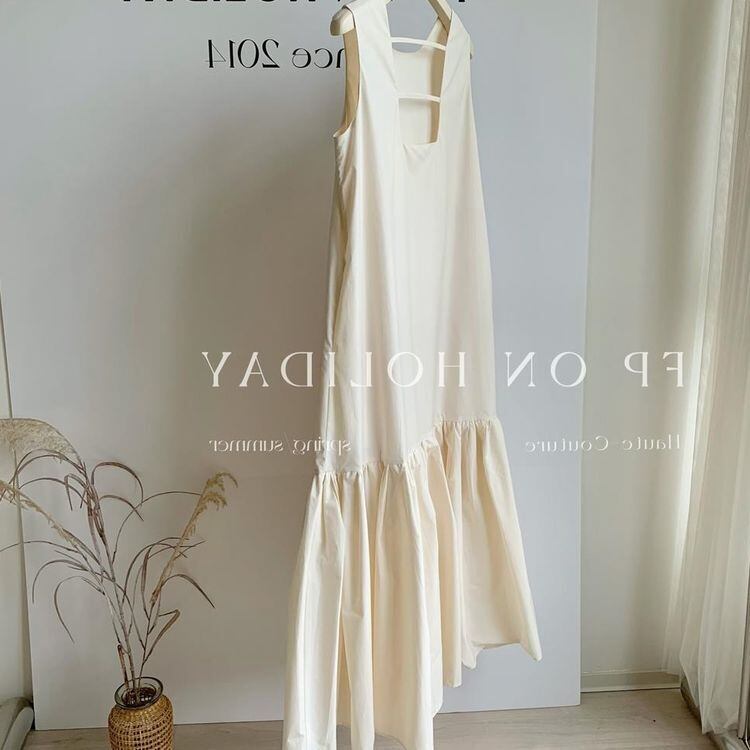 裾の切り替えフレアデザインとバックスクエアオープン