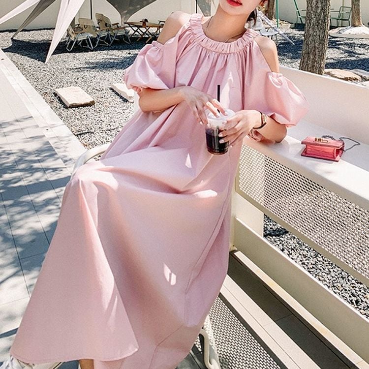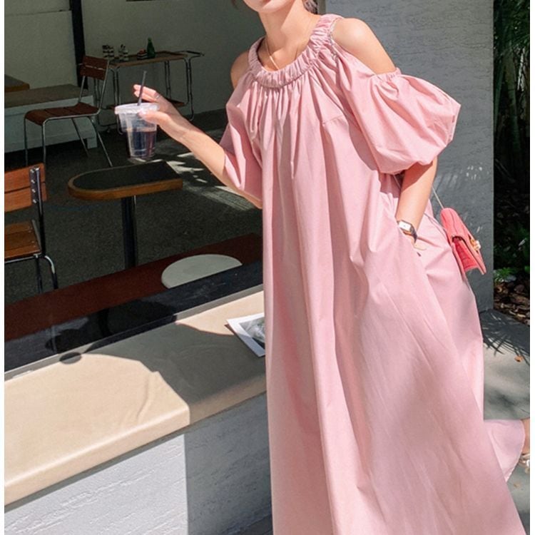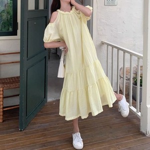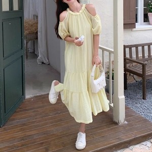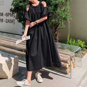 3color オープンショルダー フレア ワンピース 24104