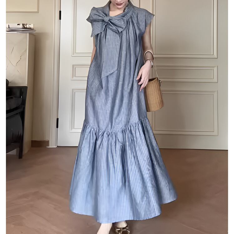 リボン ストライプ ワンピース 24112