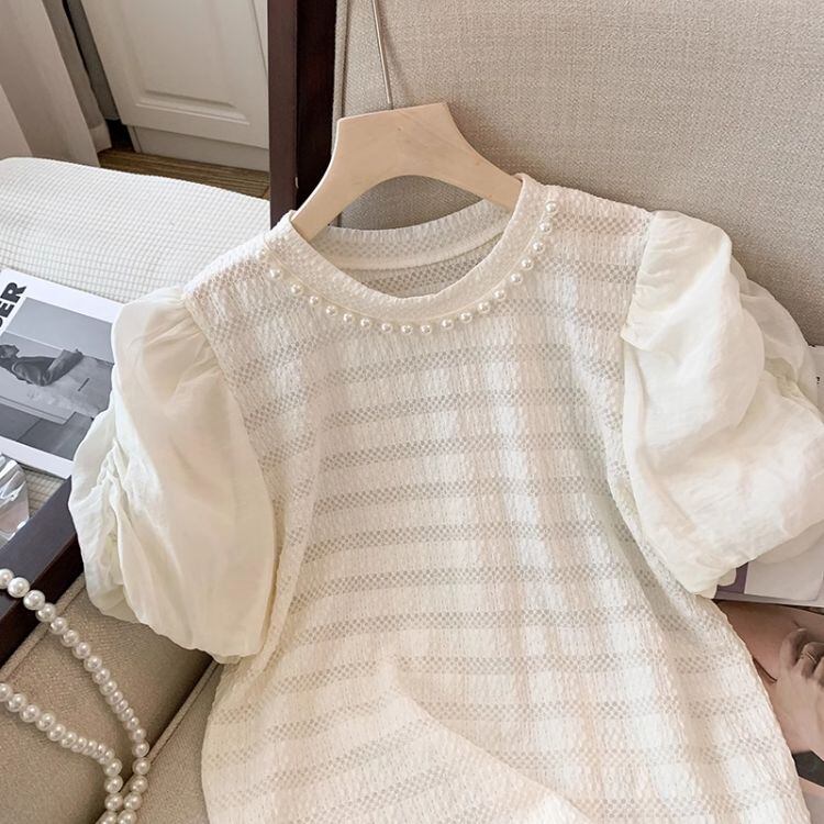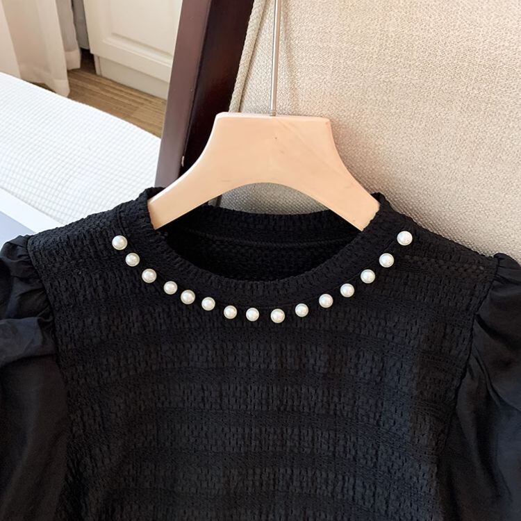 2color パール付き パフスリーブ ブラウス 24095