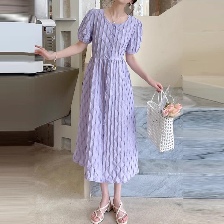 パフスリーブとAラインシルエットが可愛らしいワンピース。