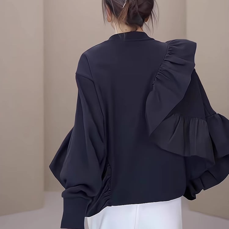#ブラックコーデ #フリルスリーブ #ラッフルスリーブ #レディースファッション #スタイル #コーディネート #トレンド #モデル #アウトフィット #カジュアル