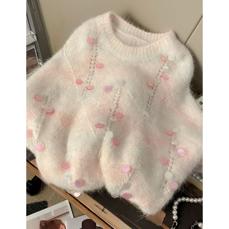 #セーター #ピンクハート #ニット #ファッション #カジュアルスタイル #ソフトプルオーバー #スパンコール #トレンド #可愛い #秋コーデ