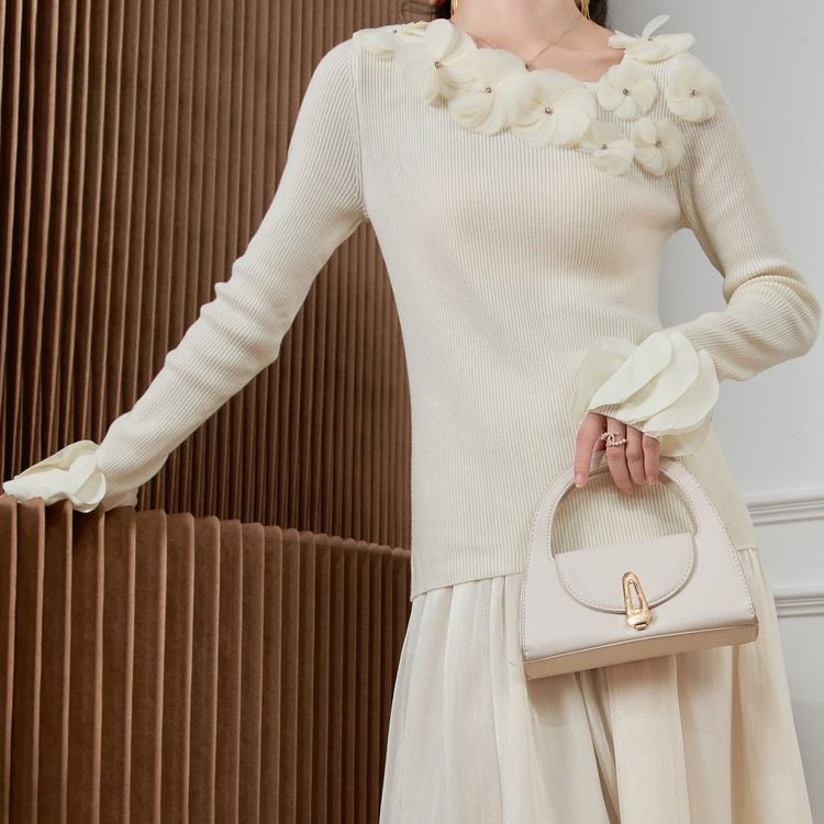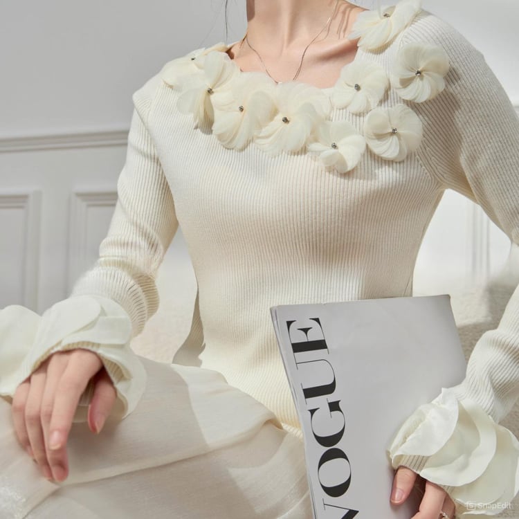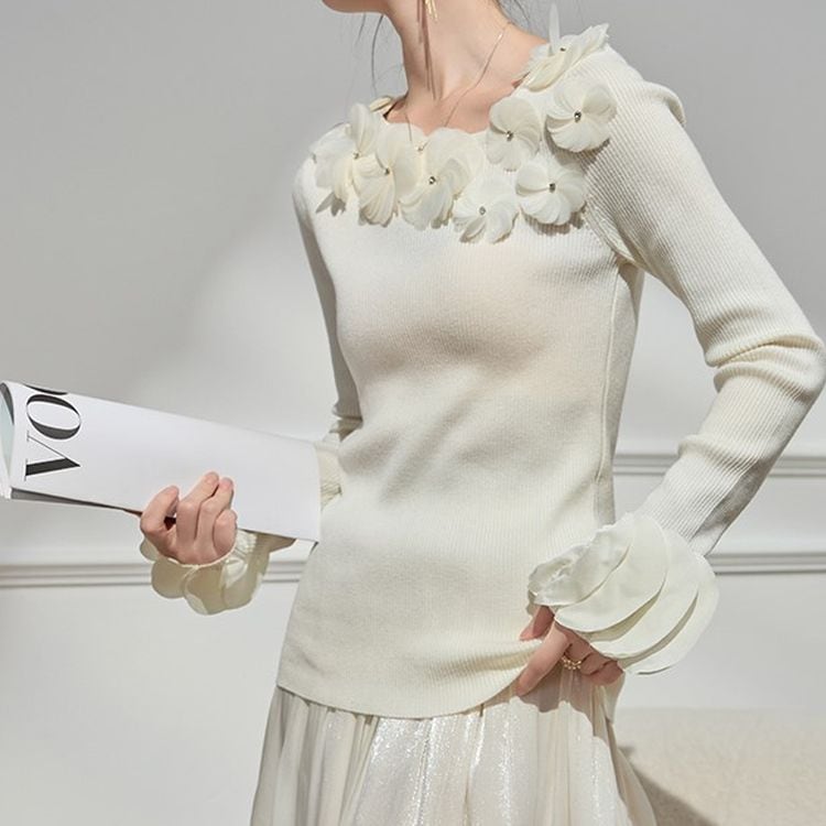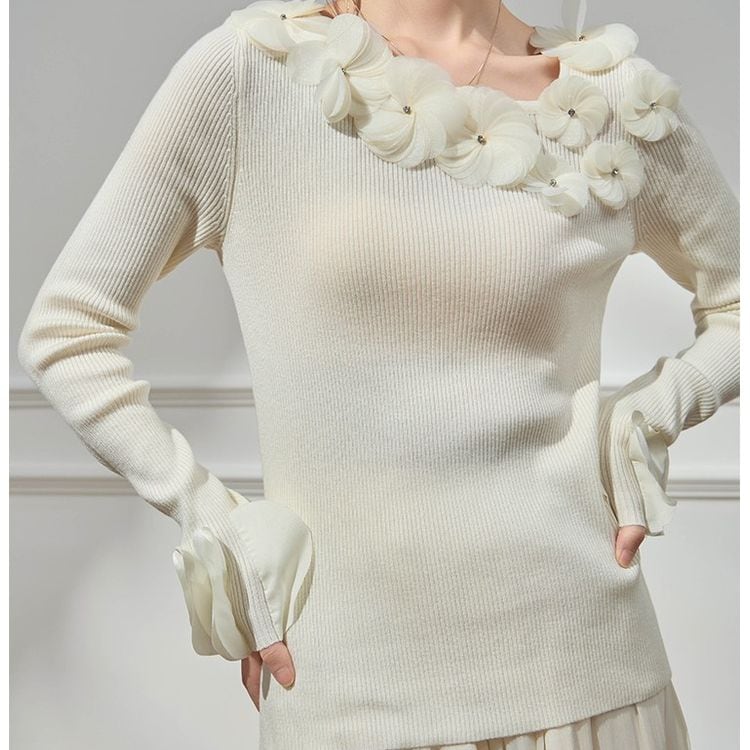 #フラワーモチーフ #プルオーバー #ラッフル #ニット #ホワイトセーター #ファッション #スタイル #コーディネート #春ファッション #おしゃれ