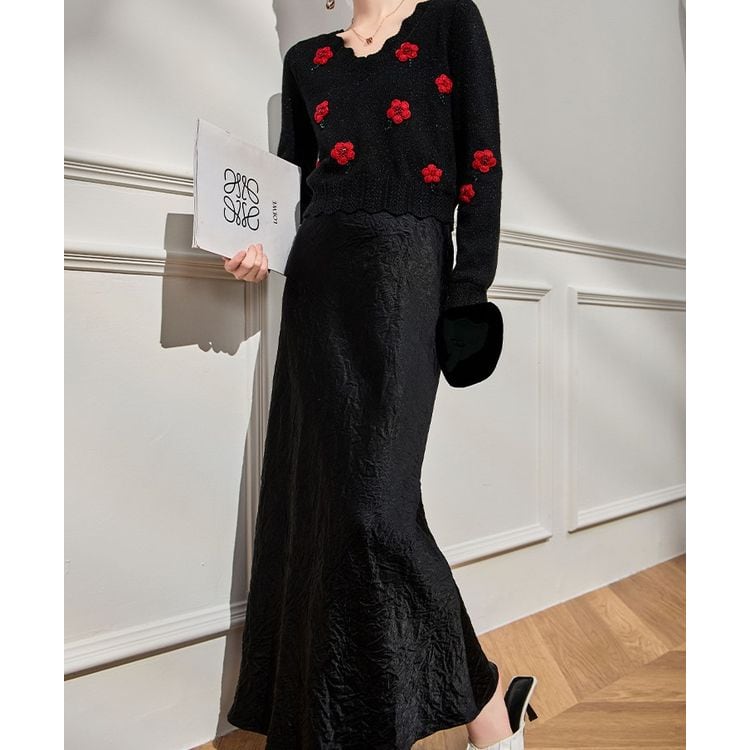 #フラワーモチーフ #スカラップ #ラメニット #トップス #ファッション #コーディネート #秋スタイル #おしゃれ #トレンド #カジュアル