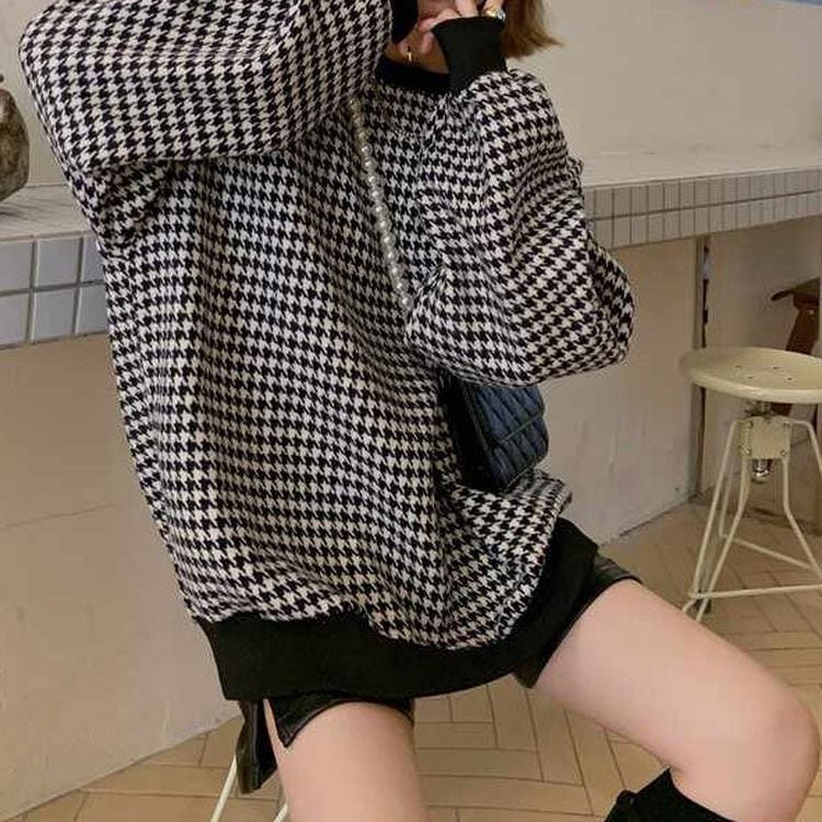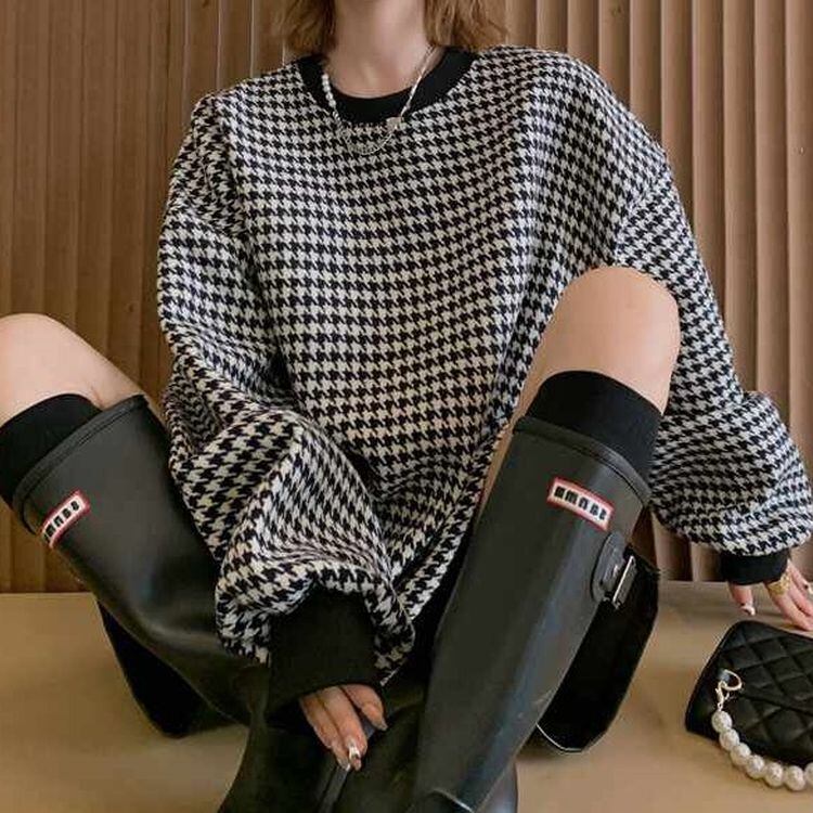 #ストライプセーター #バイカラー #ハウンドトゥース #ファッション #コーディネート #ブラックブーツ #秋ファッション #カジュアルスタイル #おしゃれさん #女性ファッション