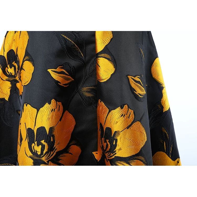 #フラワースカート #ブラックイエロー #ジャカードスカート #ウィーブスカート #フレアスカート #ファッション #スタイル #春コーデ #トレンド #おしゃれ