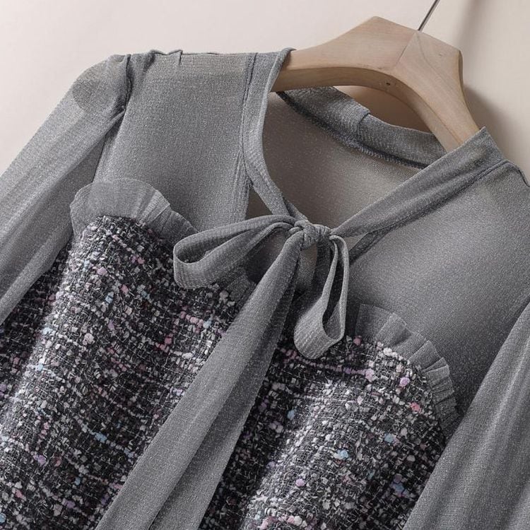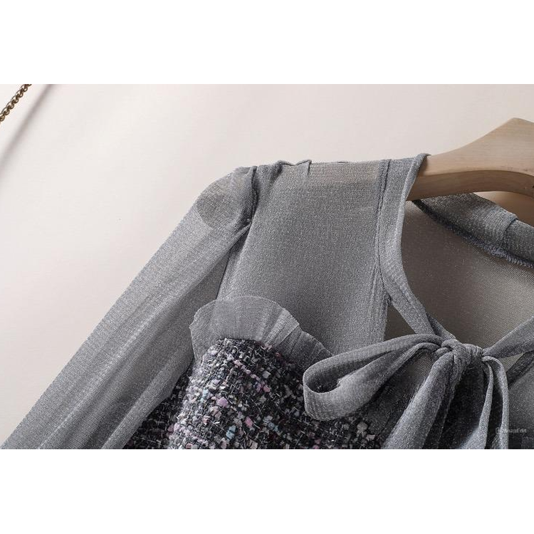 2color シアー リボン ドッキング ツイードワンピース 24345