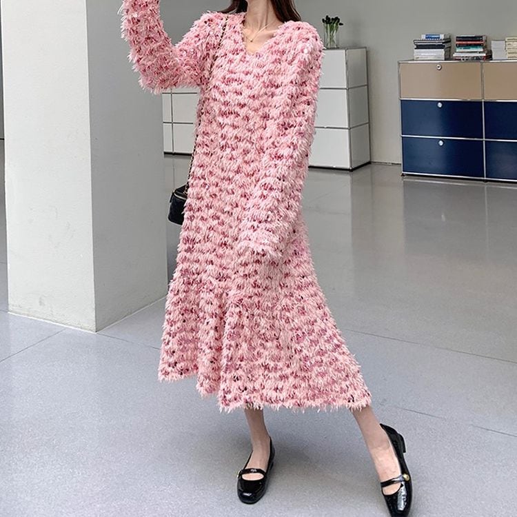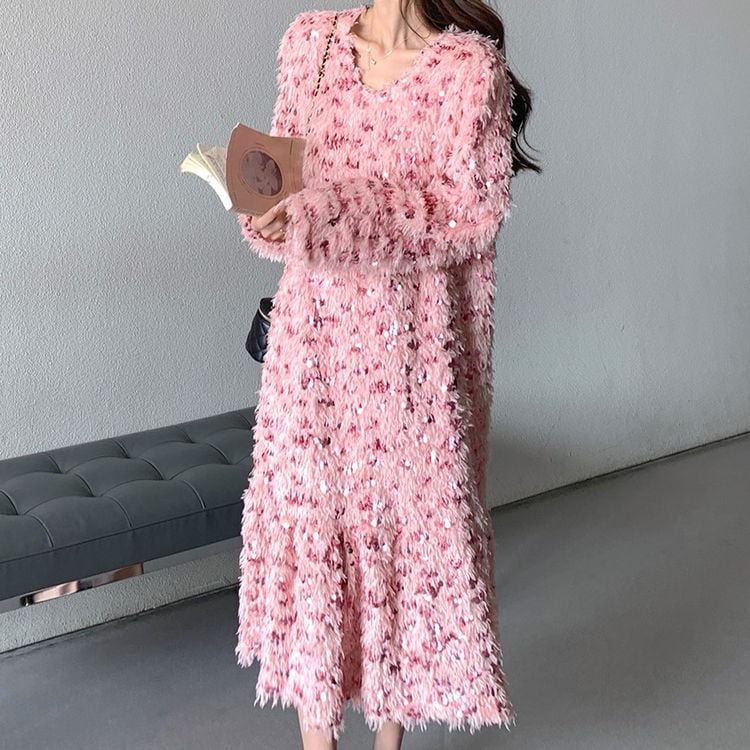 #ピンクドレス #ベンチ #ファッション #フリンジ #スパンコール