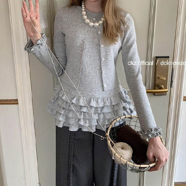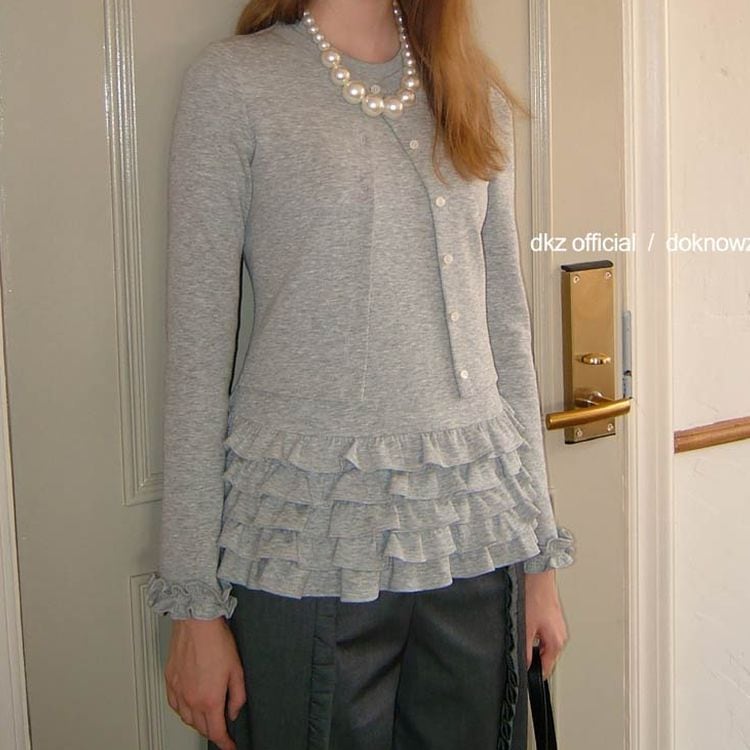 #グレーセーター #ショートパンツ #ティアードフリル #ポエットスリーブ #ファッションコーデ