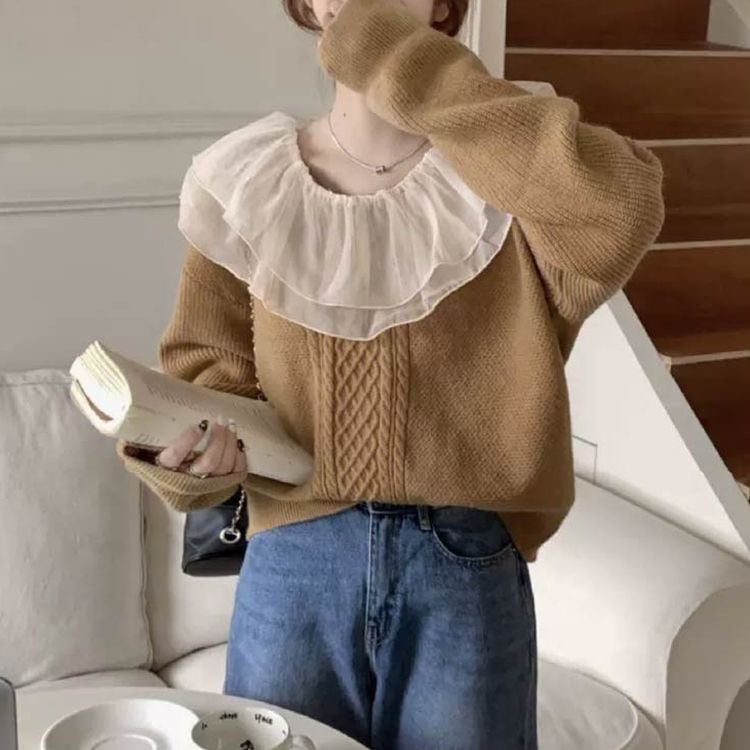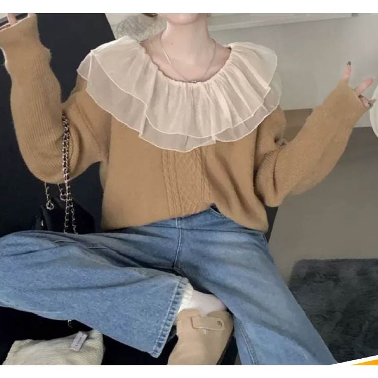ダブルフリル シアーカラー ケーブル ニット 24448