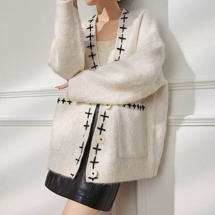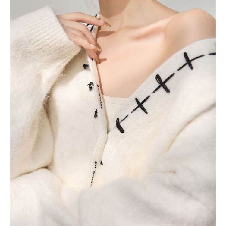 クロスステッチ Vネック オーバーサイズ カーディガン 24467