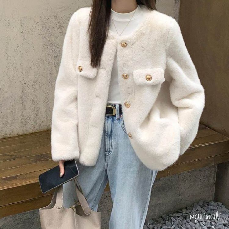 #ファーコート #ホワイトコート #カジュアルスタイル #ファッション #冬コーデ