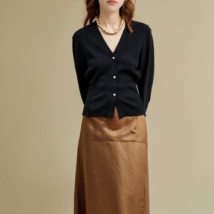 #ホワイトカーディガン #ブラックスカート #ファッションスタイル #カジュアルコーデ #トレンドファッション