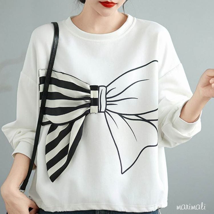 #ホワイトセーター #ビックリボン #アシンメトリー #ラウンドネック #トレーナー