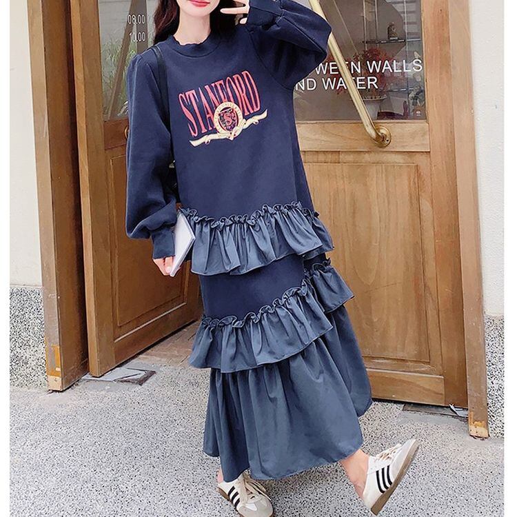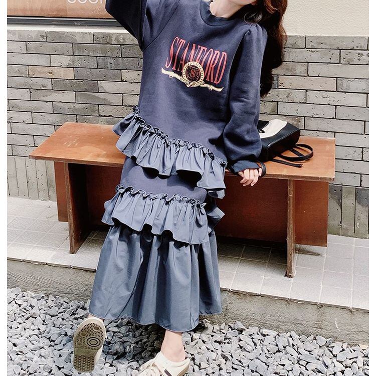 ロゴスウェット ドッキング ティアード フリル ワンピース 25068