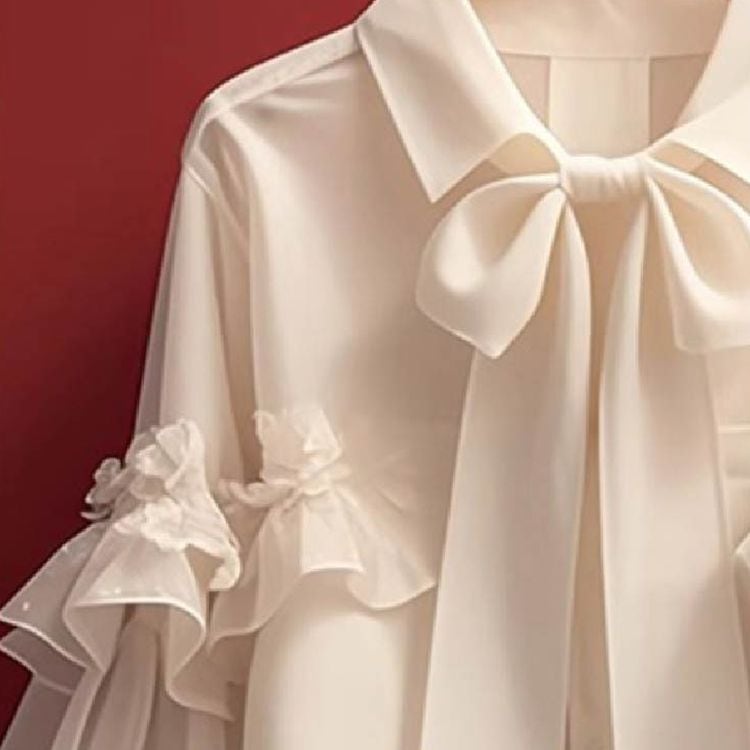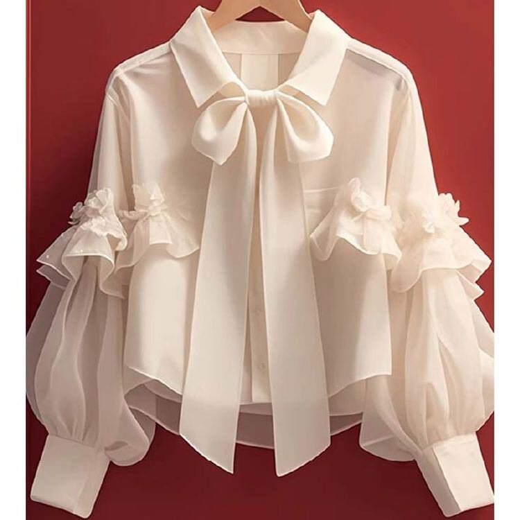 リボン ボウタイ フリルバルーンスリーブ ブラウス 25076