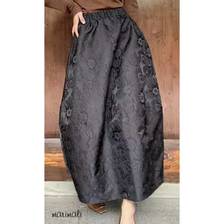 ジャカード フラワー コクーンスカート ブラック 25081