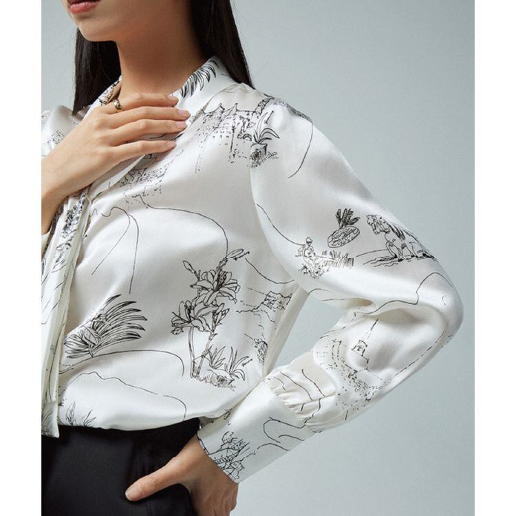 ボウタイ Vネック プリントデザイン ブラウス 25084